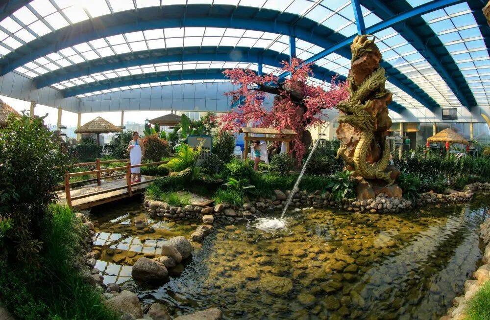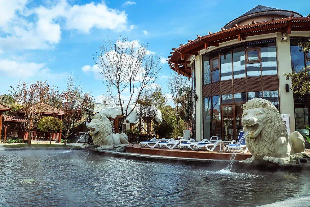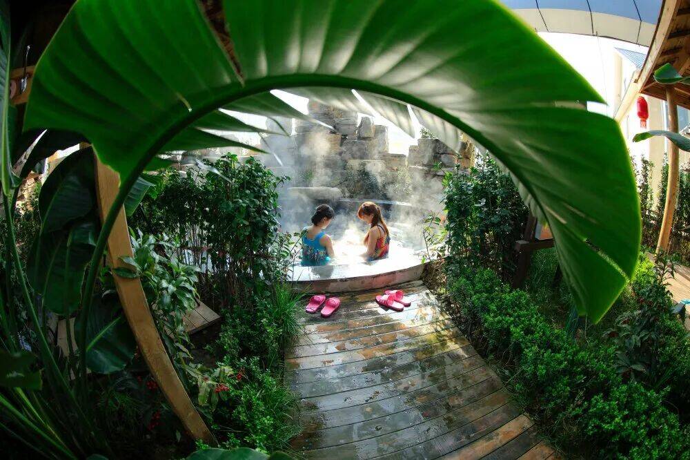 弘潤溫泉,水源來自地下1600米的天然鹽鹵,溫度在38℃—42℃,含對人體有益的多種礦物質和微量元素。弘潤溫泉分布在室內、室外,有不同場景和功能的泡池100余個,可以沉浸在霧氣升騰的溫泉水中,養(yǎng)生暖心、放松壓力。