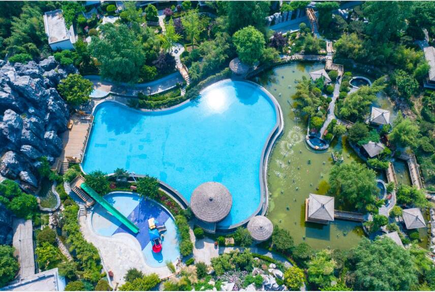 竹山溫泉依山傍水,山林環(huán)繞,氣韻天然,是一處綜合性的旅游溫泉度假項目。設有接待大廳、茶水間、多功能桑拿房、餐飲住宿以及獨立溫泉別墅等配套功能設施。室內大泡池2個、室外泡池21個、兒童戲水池1個、無邊際游泳池1個,滿足不同群體的個性需求。竹山溫泉水取自于地下3000米,溫泉約50度,水中富含鍶、鈉、鈣、硫等多種對人體有益的微量元素,又稱硫磺泉,軟化皮膚、康養(yǎng)保健。