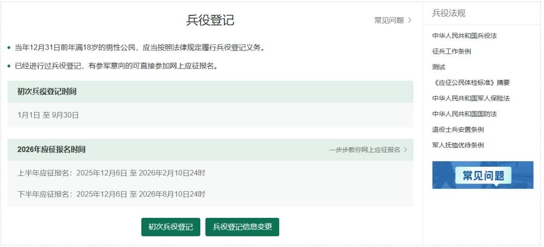 在這個頁面中,會告知報名時間以及參軍的政策說明,建議看完后,點擊“初次兵役登記”完成登記。