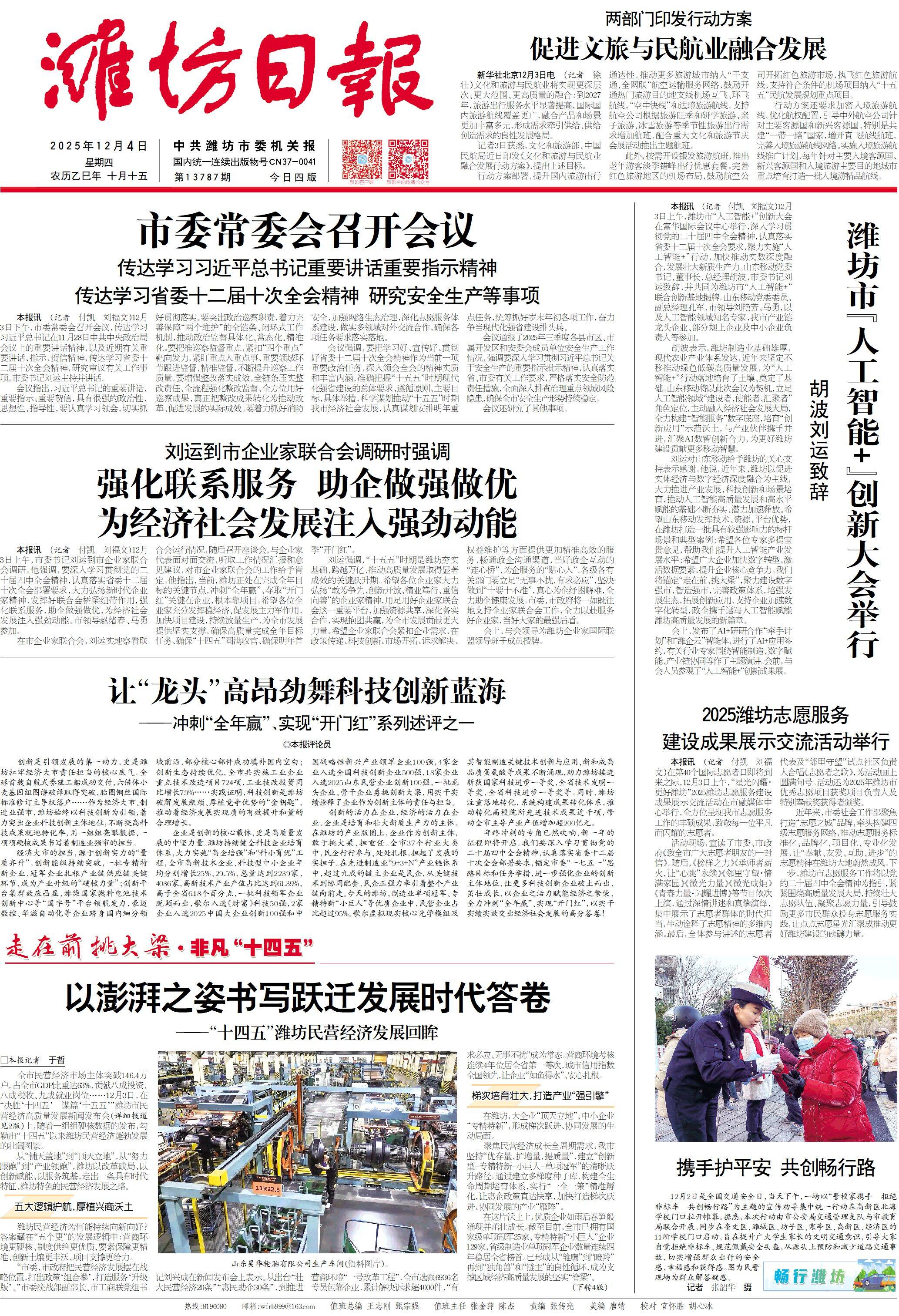 經(jīng)濟大市的擔(dān)當(dāng),源于創(chuàng)新實力的“量質(zhì)齊升”。創(chuàng)新能級持續(xù)突破,一批專精特新企業(yè)、冠軍企業(yè)扎根產(chǎn)業(yè)鏈供應(yīng)鏈關(guān)鍵環(huán)節(jié),成為產(chǎn)業(yè)升級的“硬核力量”;創(chuàng)新平臺集群效應(yīng)凸顯,濰柴國家燃料電池技術(shù)創(chuàng)新中心等“國字號”平臺領(lǐng)航發(fā)力,豪邁數(shù)控、華滋自動化等企業(yè)躋身國內(nèi)細分領(lǐng)域前沿,部分核心部件成功填補國內(nèi)空白;創(chuàng)新生態(tài)持續(xù)優(yōu)化,全市共實施工業(yè)企業(yè)重點技術(shù)改造項目724項,工業(yè)技改投資同比增長7.9%……實踐證明,科技創(chuàng)新是濰坊破解發(fā)展瓶頸、厚植競爭優(yōu)勢的“金鑰匙”,推動著經(jīng)濟發(fā)展實現(xiàn)質(zhì)的有效提升和量的合理增長。